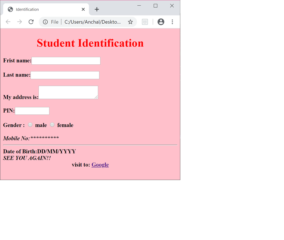 Write a program to create in HTML for student identification.